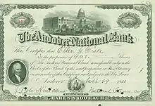 Share of the Andover National Bank, issued 29 March 1910