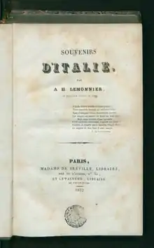 • André Hippolyte Lemonnier (1832). Souvenirs d'Italie (in French). Paris: Madame De Bréville et Levasseur.