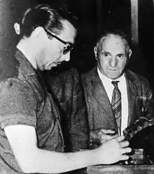 Framini received numerous recognitions in later years. His 1962 electoral victory was honored with the bestowment of the title of "Former Governor-elect of the Province of Buenos Aires" by Governor Eduardo Duhalde and the Argentine Chamber of Deputies recognized him for his historical role as a Notable Argentine, in 1997. Framini opposed President Carlos Menem's abandonment of his populist Peronist platform (on which he was elected in 1989) and offered his support to a small left-wing party in 2000.[4] He attended a May 9, 2001, tribute to the populist former first lady, Eva Perón, at the Argentine Workers' Center headquarters. There, Leonardo Favio's Perón: A Symphony of Feelings (1999) was shown as part of the tribute, and when the projection came to an end, Andrés Framini was found dead in his seat; he was 86.[5] He was buried in La Chacarita Cemetery.
