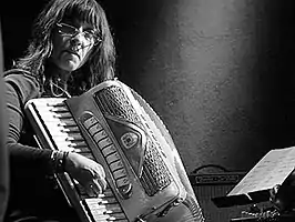 Andrea Parkins is an American composer, sound artist, performer and improvisational musician based in New York.[1] She is known for her inventive explorations on the electric accordion, generative sound processing, and arrangements of objects and sound.[2] Parkins received a BFA from Tufts University and MFA from Mason Gross School of the Arts, Rutgers University.[1]