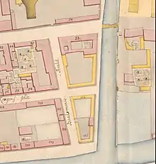Bådsmandsstræde was the northernmost street in Johan Semp's original masterplan for Christianshavn from 1617. The narrow tract of land on the north side of Bådsmandsstræde was in the beginning of the 18th century the site of a lumberyard owned by Niels Alsing. It reached all the way from Strandgade to Christianshavn Canal and was partly lined with a row of wooden warehouses along the street. The property was in 1732 acquired by Andreas Bjørn. He demolished most of the buildings and constructed the Andreas Bjørn House at the corner of Strandgade and Bådsmandsstræde in 1834. He was also granted permission to establish a dockyard on reclaimed land to the north of his new property. Separated from the rest of Christianshavn by a branch of Christianshavn Canal (now Wilders Kanal), his dockyard became known as Bjørnsholm (Bjørn's Isle).[1]