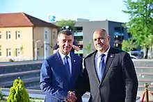 On 17 February 2019, at the fifth ANO party conference, Babis was re-elected chairman unopposed, with 206 votes from the 238 delegates present.[68] Babiš was received by President Trump on 7 March 2019 at the White House in Washington, D.C., on his first official visit to the United States. Before the start of bilateral talks, Babiš stated that the alliance between the United States and the Czech Republic had been going on for 100 years since the establishment of Czechoslovakia.[69] He also mentioned the fact that the wife of President T.G. Masaryk was an American. The two leaders discussed topics such as cyber security, the purchase of helicopters for the Czech Army, the possible construction of nuclear power stations in the Czech Republic, and the import of American liquefied gas into Europe. Babis also appealed to the US president not to impose import duties on automotive products from Europe.[69]