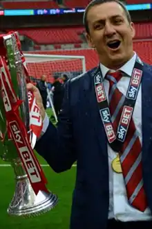 Pilley in May 2014, when Fleetwood Town won promotion to League One via the play-offs.