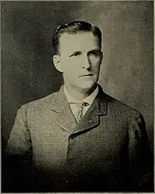 By 1880, Russel had become a bookkeeper, though he continued to live with his parents and siblings.[6] In 1891, with his retired father's financial help, Russel and his partner Millard Fillmore Dunlap established their own local bank, Dunlap, Russel and Company.[7] Ayers Bank had been named after Philadelphia-trained druggist, merchant and early local banker, David Ball Ayers, who had begun banking on the Jacksonville site in the early 1830s, and his son Marshall Paul Ayers and brother Augustus E. Ayers had continued the business, but both died shortly after the turn of the century (as did William Russel).[8] The Russel family was also prominent in Jacksonville: one brother, James Gallaher Russel (1862–1945) became a Presbyterian minister, an uncle (also Andrew Russel, 1817–1888) managed the grandfather's large farm 10 miles south of town, and two uncles, John Scott Russel (1811–1884) and George Scott Russel (1828–1914) ran the county's largest lumber yard (the J. S. and G. S. Russel Lumber Company.)[9][10]