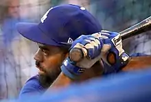 The Dodgers called him up on July 8, 2016. Toles made his MLB debut as the starting center fielder that night against the San Diego Padres and had one hit in four at bats, a double in his first plate appearance, off Andrew Cashner.[18][19][20] He hit his first home run on August 22 off Josh Smith of the Cincinnati Reds.[21] He hit his first grand slam on August 31 off Adam Ottavino of the Colorado Rockies.[22] Toles finished the season with a .314 batting average in 48 games, along with three home runs and 16 RBIs.[23] Manager Dave Roberts likened Toles's rookie season to a "dream".[24] In the postseason, he hit .364 in 22 at bats.[25]