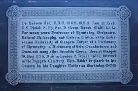 He is buried in the Terrace Catacombs of Highgate Cemetery.[17] A secondary memorial was erected in Glasgow Cathedral by his daughter, Katherine MacKinlay.