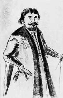 Andrew Vinius (Russian: Андре́й Андре́евич Ви́ниус, Andrey Andreyevich Vinius) (1641–1717)[1] of a Dutch family became a Russian statesman and a friend of Peter the Great. He taught the young Peter European languages. He was a member of Peter's close-knit group of friends who organized themselves into the Jolly Company and The All-Joking, All-Drunken Synod of Fools and Jesters.[2]