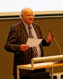In 1983, Wawn moved to the University of Leeds,[6] building on a heritage of Icelandic studies there dating back to the interwar teaching of J. R. R. Tolkien and E. V. Gordon, and the foundation of the Bogi Melsteð Collection there.[7] At Leeds, while continuing to teach medieval English, Wawn extended his teaching from Old to Modern Icelandic, succeeding in sustaining students' interest in the subject in the face of the introduction of shorter modules, which reduced the scope for language-learning, and the attractions of other literature on an increasingly diverse syllabus.[6][5] Wawn was promoted from senior lecturer to reader in English and Icelandic studies in 1995,[8] and subsequently to Professor of Anglo-Icelandic Studies.[3] In 2007, he was awarded the Knight’s Cross of the Icelandic Order of the Falcon for services to Icelandic studies.[7] He retired in 2009 and was made a professor emeritus.[9]