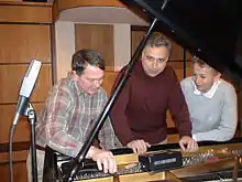 ![]() Left to right: Henry Faivre (piano technician), Andrey Kasparov and Oksana Lutsyshyn | |