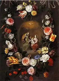 Together with Frans Francken, he further developed the genre of garland paintings, creating many special forms, among them garlands around medallions with the decades of the rosary.[3]