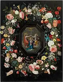 Flower garland surrounding a coronation of Mary