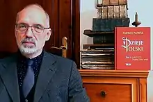 ![]() Polish historian Andrzej Nowak with his opus magnum "Dzieje Polski" (The History of Poland), 2019 | |