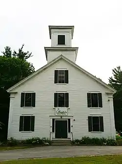 Andy's sits on the site of the original meeting house of Wilton, a log structure built in 1752 but then torn down and replaced with a larger meeting house in 1779. The second meeting house served the town for 80 years until it burned down in 1859.[25] The town voted to build a third meeting house (the building that stands today) on the same spot, at a cost "not to exceed $2,500" and the building was completed in 1860. The original Paul Revere and Sons bell damaged in the fire was recast by Henry Northey Hooper & Sons of Boston and placed in the new building, where it remains today in the bell tower. In 1883, the town moved its business to a new Town Hall located several miles to the east in what is now downtown Wilton, so the current building was sold in 1884 to a group of interested citizens and renamed Citizens Hall. It served for many years as a public meeting hall, and was taken over by the National Grange organization in 1925, and then by Wilton Lions Club in 1968. The Pine Hill Waldorf School bought the building in 1978 and for several years ran a school on the site. It was sold to Andy's Summer Playhouse on August 11, 1985.[25]
