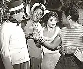 During this period, he was a Latin-American star of films, television, radio, and nightclubs. He not only made personal appearances in Mexico, but he traveled abroad to perform in other countries, including Canada and the United States.[99] By November 1956, he was earning $7,000 a week (a far cry from the $2,500 a year he earned in 1940, beating the skins as a drummer in a hotel orchestra).[100] All this good fortune led Russell to exclaim that "Mexico has been wonderful to [me]"[95] and "has made me happier than I ever was in my life."[91]