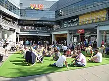 The Angel is identified in the London Plan as one of 35 major centres in Greater London.[6] It is a business improvement district, categorised as 'high street and town centre', known as angel.london.[7] The main economic activity of the area is retail. Secondary to this are the evening economy, leisure and education - Angel Central is a shopping centre with a mixture of shops, leisure and entertainment facilities including a Vue cinema and the O2 Academy Islington nightclub. It was opened in 2002 as the N1 Centre,[8] and renamed Angel Central in March 2015.[9] The City and Islington College is another large example of these categories.[5]
