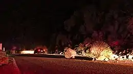 During the 2009 wildfire season the large fire known as the "Station Fire" burned the mountains through which Route 2 travels. The fire damaged the signs, guardrails, and lane striping, as well as leaving large boulders and other debris all over the road. As a result, the highway was closed by Caltrans until November 30, 2009. It was briefly re-opened until mud and rock slides in early 2010 forced a portion of the highway to be closed again from 2 miles east of the I-210 junction to 14 miles east of La Cañada Flintridge.[10] It reopened on June 3, 2011.