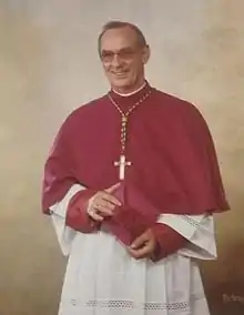 He served for twenty years as a chaplain for the U.S. Air Force, retiring as a colonel.[3] On September 29, 1983, Accerra was appointed titular bishop of Lete and auxiliary bishop of the Military Vicariate and was consecrated bishop on November 29, 1983.[4] He was a member of the United States Conference of Catholic Bishops Ad Hoc Committee on the Moral Evaluation of Deterrence.[5] Bishop Acerra died July 26, 1990, at his home in Alexandria, Virginia of lung cancer.