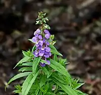Angelonia is a genus of about 30 species which occur from Mexico to Argentina and is classified in the Plantaginaceae. They are herbaceous plants occurring mainly in arid and semi-arid habitats. Most Angelonia species can be found in Northeastern Brazil in the Seasonally Dry Tropical Forest namely Caatinga.[1] The flowers of Angelonia are highly specialized for pollination because they have hairs in the inner corolla, which produces oils collected by oil bee pollinators, especially of the genus Centris.[2]