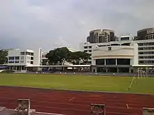 In 1986, an expansion of the college was proposed and approved by the Ministry of Education three years later. The extension included a new four-storey Library Block to contain the Oldham Library on two levels, two lecture theatres and two micro-computer laboratories. A multi-purpose void deck was built under the extension for events to be held in the college. A new 8-lane 400m track and soccer field with floodlighting capacity was also included. This phase was completed in 1991 and cost $3.5 million.