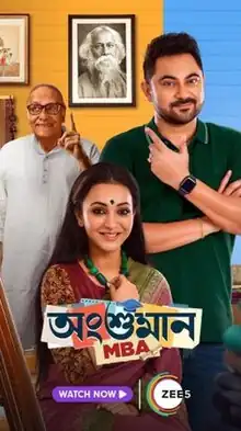 Angshuman MBA is a Bengali romantic comedy film directed by Sudeshna Roy and Abhijit Guha.[1] The story is written by Sanjeev Banerjee, with the screenplay by Rohit-Soumya.[1] It's about a father and son conflict and a love story between two very different people.[2][3] The film premiered on ZEE5 on September 29, 2023[3] featuring Aabhash Mukherjee, Soham Chakraborty, and Koushani Mukherjee in lead roles.[4][5] The film also includes performances by Sumanta Mukherjee, Vivaan Ghosh, Paran Bandyopadhyay, and others.[4][6]