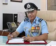 He has commanded a SEPECAT Jaguar squadron assigned to a maritime role and two IAF frontline bases, Jaisalmer AFS and Ambala AFS. He has held other key posts as well including, Principal Director at Directorate of Information and Electronic Warfare; Director in Personnel branch; Joint Director at Directorate of Concept Studies; Air Officer Commanding HQ Maritime Air Operations; Air Officer Commanding J&K Area; Senior Air Staff Officer (SASO), Central Air Command; Director General Air (Operations), Air HQ and Director General (Inspection & Safety), Air HQ and Air Officer Commanding-in-Chief (AOC-in-C), Eastern Air Command (1 January 2017 - 30 September 2018).[5][6][7][8][9]