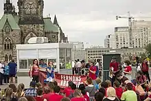 Animal Defense League protesters listen to speakers at Parliament Hill, Canada.