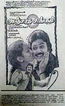 Anjatha Singam (transl. Fearless Lion) is a 1987 Indian Tamil-language film directed by M. Vijaychander for Karthik Arts. The film stars Prabhu, Sathyaraj, M. N. Nambiar, Nalini and Goundamani.