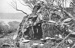 On 7 February, a signpost to the boat shed was discovered and the castaways went to Camp Cove. The crew took shelter in the boat shed and hunted seals, birds and shellfish for food. It wasn't until the tenth day that they discovered the castaway depot and a notice that the depot received regular visits from the New Zealand Government steam ships. The crew built additional huts of scrub and tussock and waited for rescue. Fearing that supplies of food would run short they continued to supplement their diet with local wildlife and also sought out the other depot on the Islands.[1]