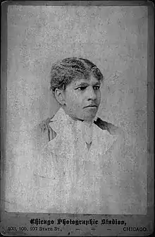 To establish a home, and themselves as "substantial citizens", the couple undertook to purchase property.[2] The five-room cottage they brought was one of the first houses in Chicago built by and for black owners, in 1857.[2] This home, near Dearborn Station at 279 Third Avenue, became a center of community and civic activity, particularly notable during the "Great Fires" of the 1870s.[2] As Hallie Quinn Brown wrote, "during the years of great growth and development of the city of Chicago, the lives of both Anna Elizabeth and Joseph Henry Hudlun blossomed with kindly impulses and good deeds."[3]