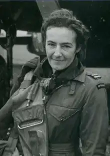 She made her way to the United Kingdom via Romania and France, where she began her efforts to become a member of the British Air Transport Auxiliary (ATA).[5] The ATA required at least 250 solo flying hours from applicants to be pilots but Leska was a newly qualified pilot when she flew in the Polish September campaign with only around 30 hours in her log book. She later said "of course, I lied and admitted to about 250 hours”.[4] On 1 January 1941, after training and passing her exams, she became a Pilot Third Officer in the ranks of the Air Transport Auxiliary.[5] She was the 28th woman accepted into the ATA, and the first Polish woman alongside Stefania Wojtulanis-Karpińska. From early 1941 she piloted aircraft from factories and repair shops to field airfields, and took part in flying equipment transfers. They often piloted bombers, delivering them from factory airfields to the airfields of bomber squadrons throughout the UK. "Most [women pilots] were English, 27 American, as well as Canadians, New Zealanders, South African pilots, a small number of Dutch women and only three of us Poles," recalled Stefania Wojtulanis-Karpińska, one of the first foreign women pilots in the ATA (the third Polish women pilot was Jadwiga Piłsudska, daughter of Józef Piłsudski, the Polish prime minister). Leska served in the ATA from 6 January 1941 until 30 November 1945, being promoted to Pilot First Officer.[6] She was made a Flight Leader in spring of 1943 and oversaw eight women pilots, five British, one Chilean, one Argentinian and one American.[7] During that time Leska was stationed at the ATA pools at both Hatfield and Hamble. She ferried 1,295 aircraft of 93 types, including flying boats and 557 Spitfires in a total of 1,241 flying hours. Along with other women pilots, Leska was photographed for publicity purposes, including a shot of her in the cockpit of a Spitfire at White Waltham taken by photographer Lee Miller which was published by British Vogue in June 1942.[8][9]