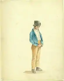 Watercolor painting of a boy in a beaver hat in St. Louis by Anna Maria von Phul, 1818