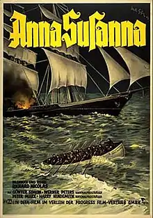 During 1952, as the government control over DEFA tightened, the studio produced only six films, all of them influenced by the Cold War and dedicated to the ideological struggle between capitalism and socialism. Anna Susanna was one of those.[1] Although the film had a plot suiting the government's policy, the DEFA Board was very reluctant to allow Richard Nicolas, for whom the picture was his debut as a director, to make Anna Susanna. Nicolas had threatened to resign if he would not be allowed to direct it, and was eventually granted permission.[2] The film was also noted for being one of the first DEFA pictures to employ primitive special effects, such as building a miniature ship model that was wrecked in an aquarium.[3]