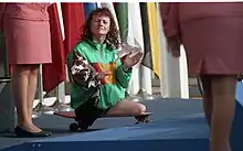 Anne Currie at the medal ceremony of the 1992 Summer Paralympics in Barcelona.