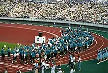 The Australian Team at the 1989 Kobe, Japan FESPIC Opening Ceremony.