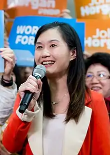 The incumbent MLA for Burnaby-Deer Lake Kathy Corrigan (BC NDP) announced in 2016 her decision to not seek re-election in the next provincial election. Kang was acclaimed as the NDP's candidate for the riding in May 2016,[8][9] then won the seat in the 2017 provincial election.[10] She is among the first three Taiwanese-Canadians to be elected to the Legislative Assembly of British Columbia, alongside fellow New Democrats Katrina Chen and Bowinn Ma.[11]