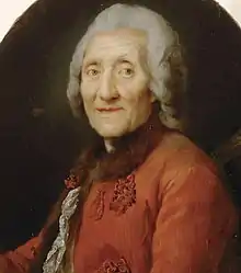 In 2002-2003 more than thirty-five of Vallayer-Coster’s paintings, which were provided by both museums and private collectors of France and the United States, were exhibited at the National Gallery of Art, The Frick Collection, and the Musee des Beaux-Arts de Nancy.[15][12] The exhibition, "Anne Vallayer-Coster: Painter to the Court of Marie Antoinette," was the first exhibition to provide a proper, all-encompassing representation of her paintings. It was organized by the Dallas Museum of Art and curated by Eik Kahng.[1][12] The exhibition included additional works by Chardin, her elder and the celebrated master of still life painting, and her contemporary Henri-Horace Roland Delaporte, among others.[1] In June 2015, the Nationalmuseum added Vallayer-Coster’s 1773 Portrait of a Violinist to its collection of 18th-century French painting. The Nationalmuseum is also in possession of Vallayer-Coster’s 1775 Still Life with Brioche, Fruit, and Vegetables and her undated miniature Floral Still Life.[16] In March 2019, the Kimball Art Museum acquired Vallayer-Coster's 1787 painting titled Still Life with Mackerel.[17]