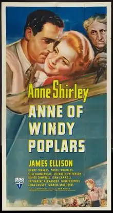 Anne of Windy Poplars is a 1940 film based on the novel of the same name by Lucy Maud Montgomery. A sequel to the 1934 film Anne of Green Gables, it features Anne Shirley (previously billed as Dawn O'Day) returning from the first film in the title role.