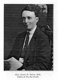 - 1 2 Morgenthaler, O.; Bindley, Miss M. D. (1 December 1961). "In Memory of Miss Annie D. Betts". Bee World. 42 (12): 307–310. doi:10.1080/0005772x.1961.11096909. ISSN 0005-772X.