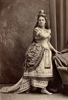 The following summer was spent at Baden-Baden in study with Pauline Viardot, and in the autumn she began an engagement for Italian opera at Stockholm under the direction of Ferdinand Strakosch. After two months, she was engaged to sing at the Royal Swedish Opera, and sang her part in Italian to the Swedish of the other artists. The following summer she spent in Paris, studying with Giovanni Bottesini, a conductor and contra-bassist. In the autumn she went to Brussels to sing in Italian opera, and there made a contract with Messrs. Maurice and Max Strakosch for three years in the United States. In the winter of 1869/70 she studied in Paris, and during the spring in London with Henry C. Deacon, and sang at Drury Lane Theatre.[1]