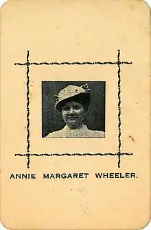 Annie Margaret Wheeler OBE (née Laurie; 1867–1950) was an Australian volunteer welfare worker who assisted soldiers from Central Queensland during World War I.[1] She maintained a detailed card index of all soldiers from Central Queensland so that mail and parcels from their families could reach them and she provided practical and financial assistance to soldiers who were wounded, on leave in England or needing assistance with the army's bureaucracy. She was nicknamed "Mother of the Queenslanders" and "Mother of Anzacs".[2]