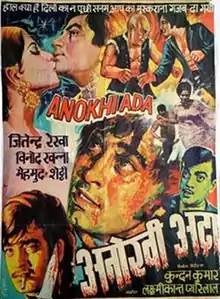 Anokhi Ada (transl.Unique style) is a 1973 Indian Hindi-language film produced and directed by Kundan Kumar. The film stars Jeetendra, Rekha and Vinod Khanna, with music composed by Laxmikant–Pyarelal.[1]