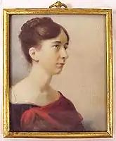 Dickinson married Sarah Brown in New York City in 1812, and they lived there until 1820, when he resumed traveling.[2] Dickinson met the famous artist Gilbert Stuart in Boston 1823. Stuart was unusually impressed by Dickinson, and commissioned him to paint miniatures of himself and his daughter.[3] Around 1824 the Dickinsons adopted two children whose mother had died, Mary Ann Walker[lower-alpha 1] and William Edmund Walker. During his settled periods, the family lived with Dickinson. While he was on the road, they lived in Milton with his family.[1]