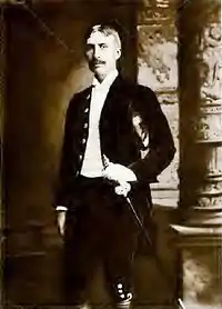 Whilst in England Stokes joined in fox-hunting and grouse shooting, taking country residents or staying with family or acquaintances. He enjoyed the social scene, attending Cowes Week with his cousin Arthur James, on board his yacht Lancashire Witch plus race horse meetings at Goodwood. His wife and daughters, Sarah and Helen, were presented at court in 1889. He attended court of Queen Victoria at St James's Palace during the London seasons, keeping a set of clothes for the occasion - black velvet coat, waistcoat, black silk stockings, shoes with buckles and a sword with a black scabbard.[27]
