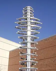 Antenna Man is part of a series consisting of around six other antenna forms. One of these is located on Massachusetts Avenue, Indianapolis; this work is entitled Viewfinders. Another sculpture, also titled Antenna Man and similar in theme, is located in Crown Hill Cemetery in Indianapolis.[2] Originally Antenna Man was left partially constructed while work was being completed on the larger version of Antenna Man (21 ft. by 3 ft. by 3 ft). The larger version was on exhibit at Navy Pier from May until October 1999; it was later moved to the campus of Illinois Institute of Technology.