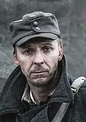 Rokka is a farmer and family man from the Karelian Isthmus, who has the military rank of corporal. Rokka, who participated in the Winter War, joins the machine gun company in 1941 during the Continuation War, and is one of the oldest in the unit. As a fighter, he is very capable, being disrespectful to formal discipline, he ends up several times in disputes with Lieutenant Lammio. When breaking the given orders, Rokka considers himself to be above the rules, and he is even ready to threaten to kill others if they try to bring him to justice.[3] As a soldier, Rokka is above all very pragmatic in nature: he enjoys fighting, but not killing, because he feels no hatred towards the enemy. In his opinion, there are only two options in war: kill or be killed. As far as we know, Rokka's only, but even greater, motive for his participation in the war is to get his home region, the Karelian Isthmus, which was looted from Finland as a result of the Winter War, back from the Soviets. Rokka is not a thinker either, instead he leaves the consideration of the morality of war to others.[4]