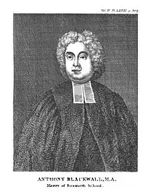 Anthony Blackwall (bapt. 17 July 1672 – 8 April 1730), was an English classical scholar and schoolmaster.