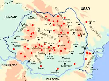 ![]() Map of Romania with armed resistance areas marked in red | |||||||