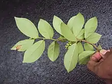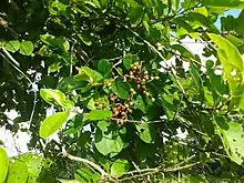 A variety of trees grow in rice fields in Champasak Province, southern Laos. Fruit trees, including this species, are common in fields.[13] This species provides fruit and medicine. The Boro of Assam relish the mild sour leaves of this plant and combine it with fish or meat to make curries. Amongst people who are known by the external designation of Loi in the Thoubal district of Manipur, northeast India, the plant is used in their traditional ethnomedicine to treat diabetes.[15]