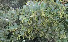 Antidesma ghaesembilla is a species of plant in the Phyllanthaceae family. It is native to an area from northern Australia to the Philippines, Zhōngguó/China, and west to India.[3] The shrub or tree usually grows in moist soils in plant communities ranging from savannah to gallery forest to closed forest. It is associated with a number of species of fungus, insects and animals, including emus. Amongst the Mangarrayi and Yangman people of north Australia, the sweet ripe fruit of the tree are much appreciated and linked to the build-up season and to the koel. As well as food, the plant is used as a calendar-plant, for dyeing, in traditional medicine, in religious/magical practices, as fuel, and as an insecticide.