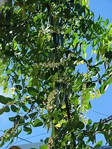 The fruit is eaten fresh or pickled in Cambodia.[12] Cambodian traditional medicine includes the following: young branches, mixed with papaya roots, to regulate menstruation; a mixture of the bark and tobacco is used to dress some wounds; crushed leaves are applied to the fontanelle of newly born babies to prevent them from catching the common cold.